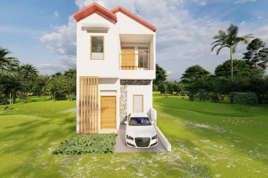 Terdapat taman di bagian depan, membawa suasana sejuk ke dalam rumah dengan sirkulasi udara yang baik.
